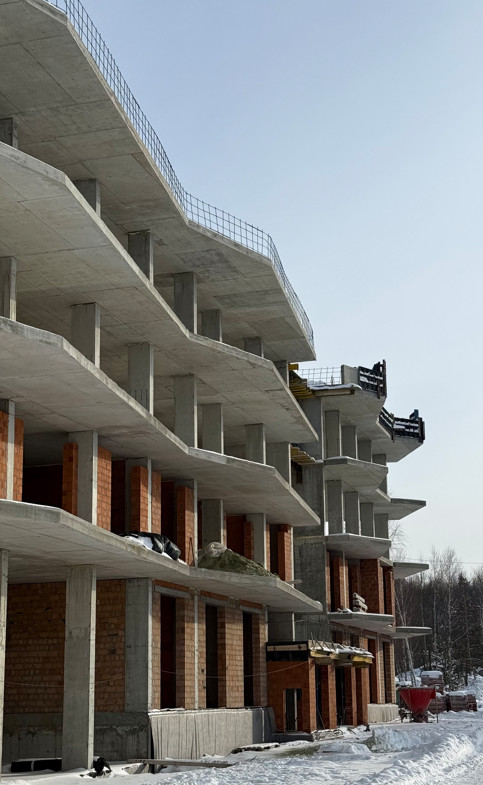 У січні було виконано влаштування вертикальних залізобетонних конструкцій третього та четвертого поверхів. Також була проведена гідроізоляція фундаментів.