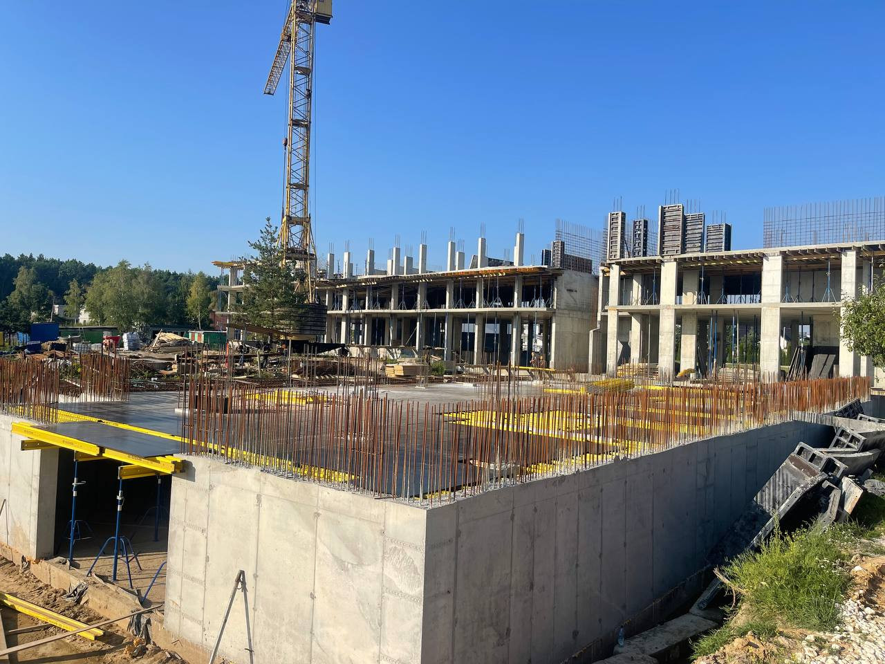 У вересні були завершені роботи по фундаментній плиті, виконано влаштування вертикальних залізобетонних конструкцій та плити перекриття паркінгу, яке в тому числі передбачає розміщення спеціально облаштованого укриття зі всіма зручностями для мешканців.