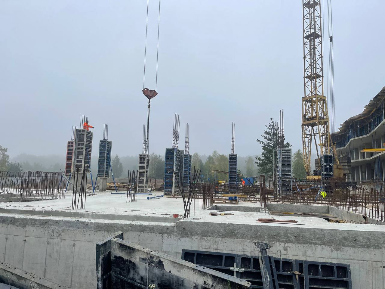 У жовтні планується влаштування вертикальних залізобетонних конструкцій четвертого поверху та монтаж опалубки під перекриття даху.